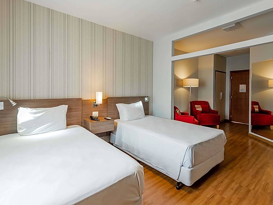 The spacious double room provides air conditioning, a mini-bar, as well as a private bathroom featuring a shower and a hairdryer. The double room features a wardrobe, a safe deposit box, a sofa, a TV, as well as city views. The unit offers 2 beds.